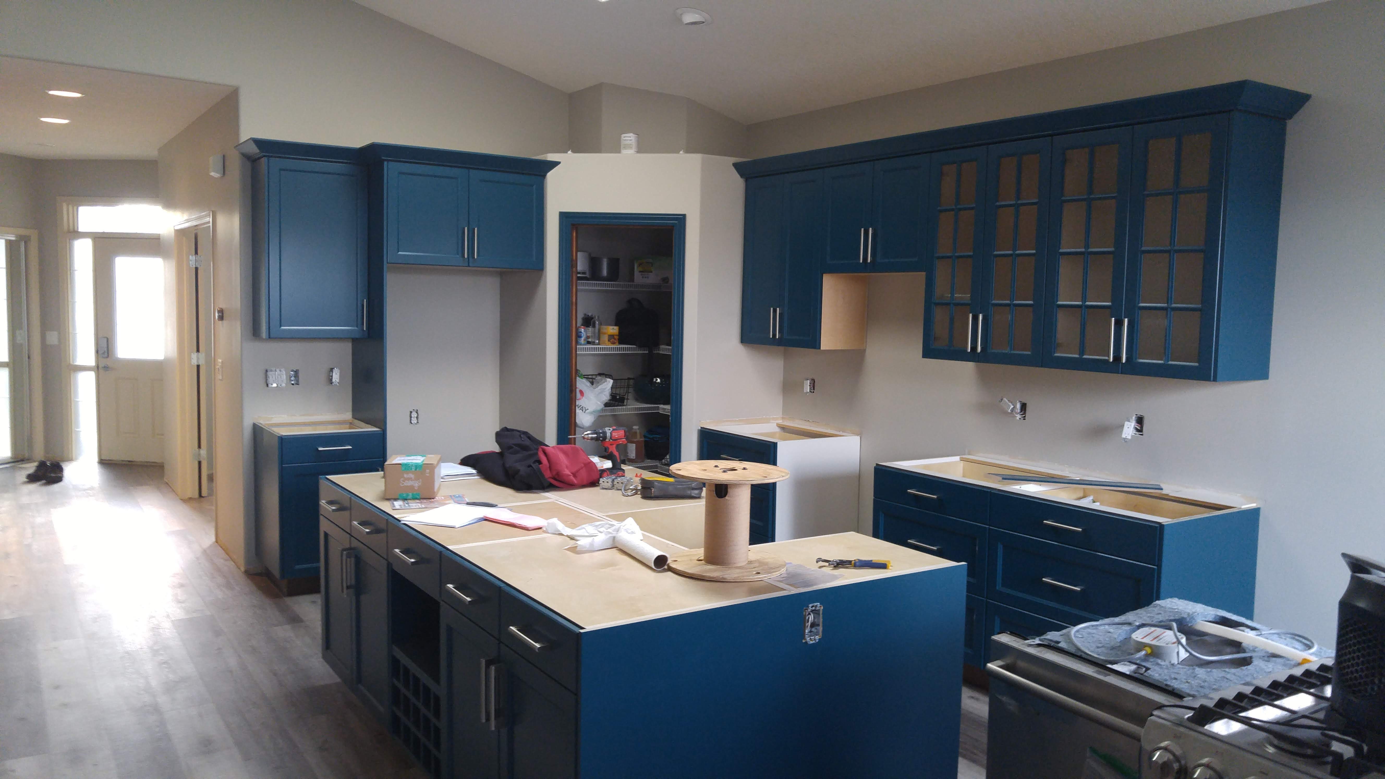 A recent kitchen reno, in progress… Lighting in ceiling, Microwave relocation to over the range, new colour matched receptacles and switches along counter, as well as under cabinet lighting!